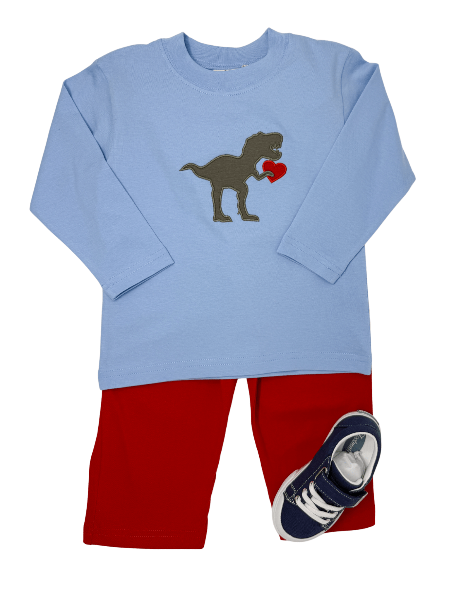 Boys Heart T-Rex L/S Shirt - Sky Blue