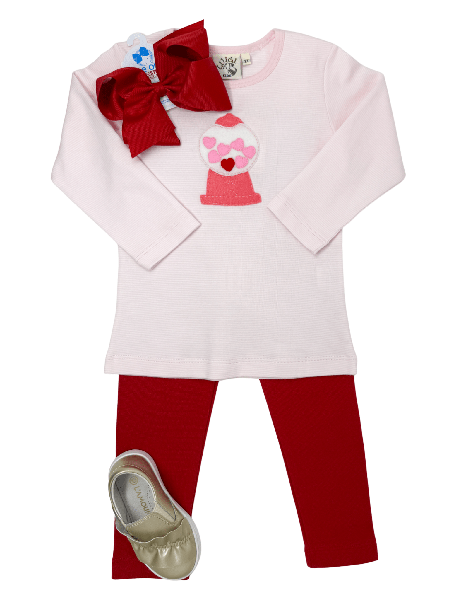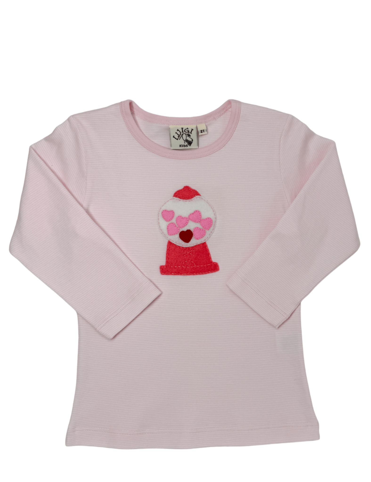 Girls L/S Bubblegum Machine w/ Hearts Shirt - Lt. Pink/White