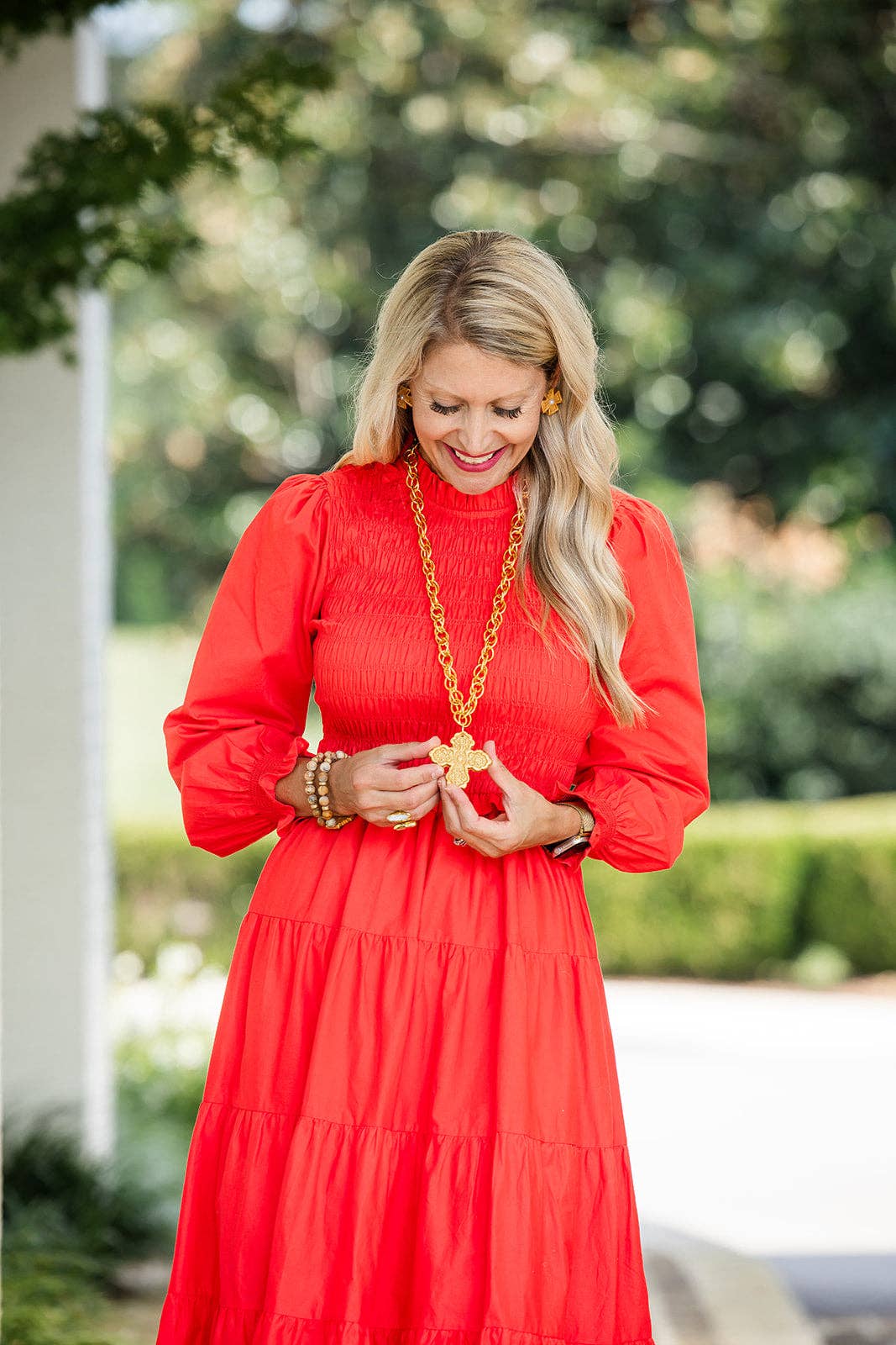 Beautiful, lightweight, and effortlessly elegant, this 34-inch double gold chain necklace features the delicate Susie Cross, a timeless symbol of faith and grace. Designed to serve as a daily reminder to always look up, this piece carries the message of Romans 8:28 — “In all things God works together for good for those who love Him.” Perfect for layering or wearing on its own, it’s a versatile accessory that blends meaning with style.