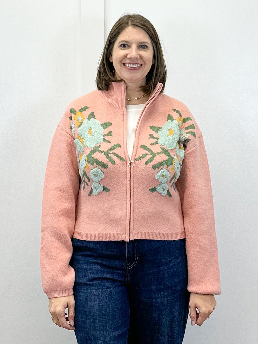 Feminine charm meets everyday comfort in the Cozy Flora Zip Sweater. Designed in a soft dusty pink hue, this zip-up knit features beautifully textured floral embroidery and a relaxed silhouette that’s effortlessly flattering. Perfect for layering over your favorite denim or pairing with skirts for a cozy-chic look.