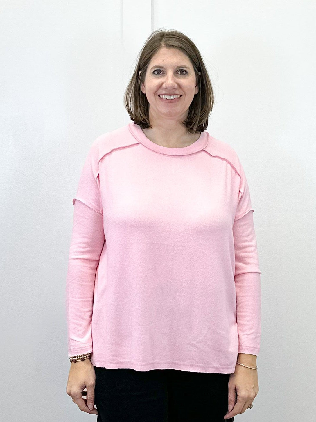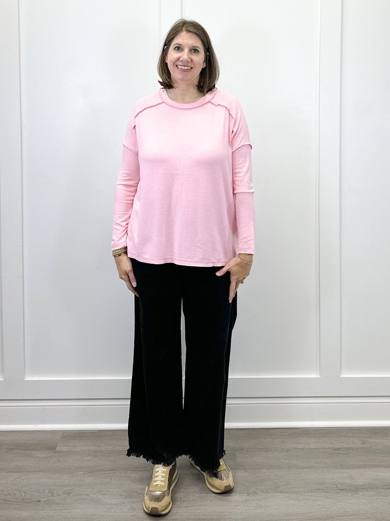 Meet your new wear-everywhere essential—the Exposed Seam Brushed Tee. Effortlessly cozy and beautifully draped, this top brings together softness, movement, and a touch of laid-back edge. The melange hacci knit feels dreamy against the skin, while exposed seams and a hi-low hem create that perfectly relaxed, lived-in look you’ll reach for again and again.