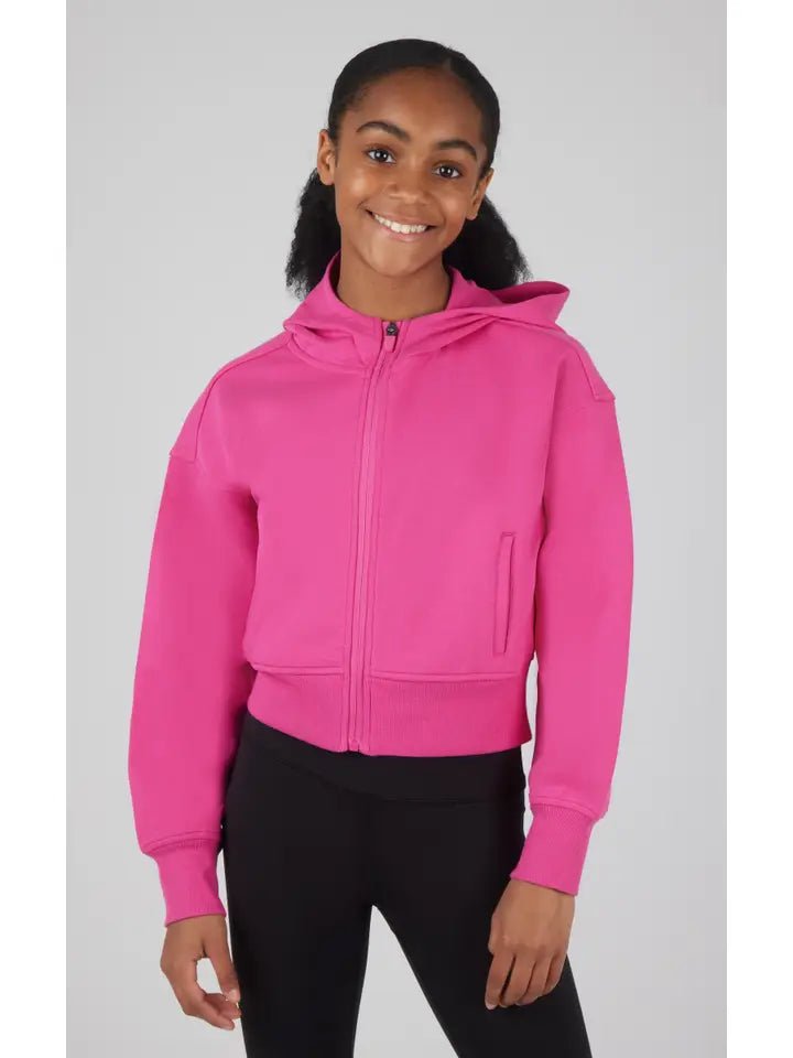 Bright, bold, and made to move — our Scuba Jacket in Rose Violet is a burst of color and confidence! Crafted from a smooth, stretchy blend, this zip-up jacket delivers the perfect mix of comfort and cool. Ribbed cuffs and hem keep the fit snug, while the soft scuba fabric adds a modern, sporty touch she’ll love.
