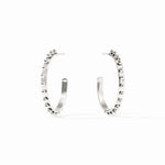 A modern twist on a timeless favorite, the SoHo Hoop – Silver adds a touch of texture and shine to your everyday look. Crafted in pure silver plate with a tarnish-free finish, these hoops feature a distinctive beaded edge that catches the light from every angle. At 1 inch in length, the medium size strikes the perfect balance between subtle and statement, making them versatile enough for both day and night. Finished with a secure post back for pierced ears and stamped with the Julie Vos hallmark, these hoops are designed for effortless elegance and enduring style.