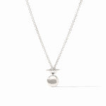 Sleek and radiant, the Solara Delicate Necklace brings understated elegance to your everyday look. Handcrafted in pure silver plate with a tarnish-free finish, this necklace features a subtly hammered 0.6-inch pendant that catches the light with every movement. The 17.5-inch chain closes securely with a lobster clasp, making it the perfect length to wear alone or layered with other favorites. Finished with the Julie Vos hallmark, it’s a timeless piece designed for both sophistication and versatility.