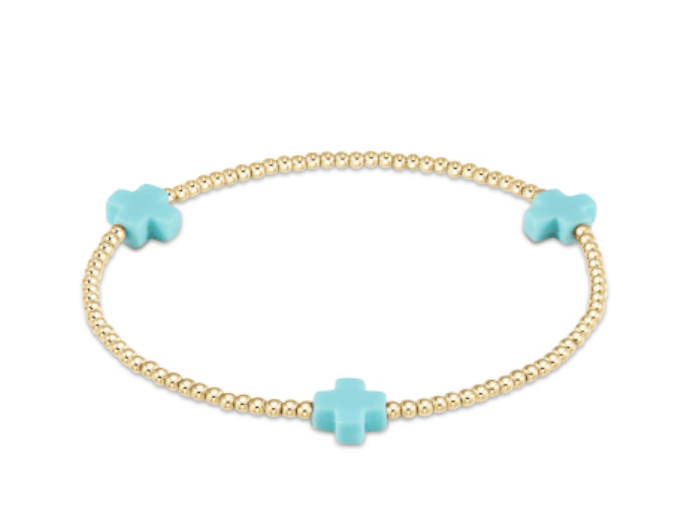 Signature Cross Gold Pattern 2mm Bead Bracelet - Turquoise