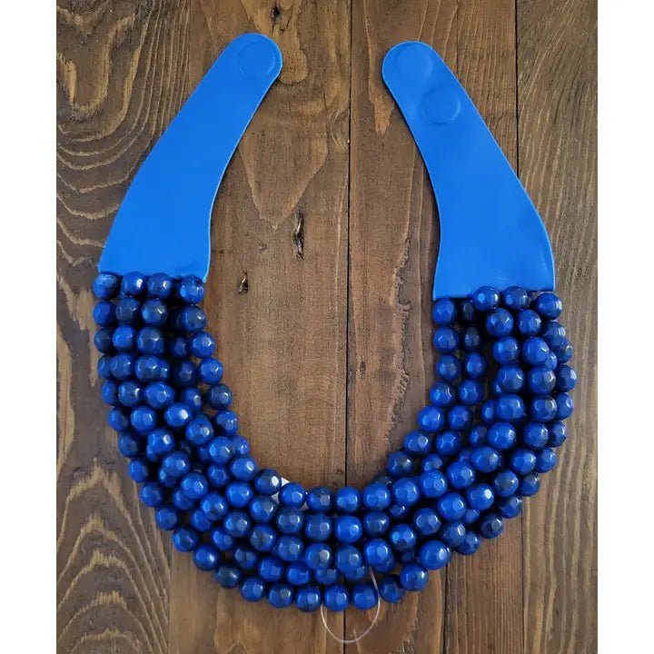Chunky Beaded Layered Magnetic Necklace - Royal Blue