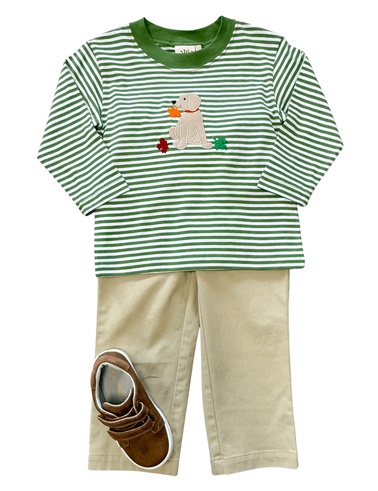 Lab w/ Leaves L/S T-Shirt - Green Stripe