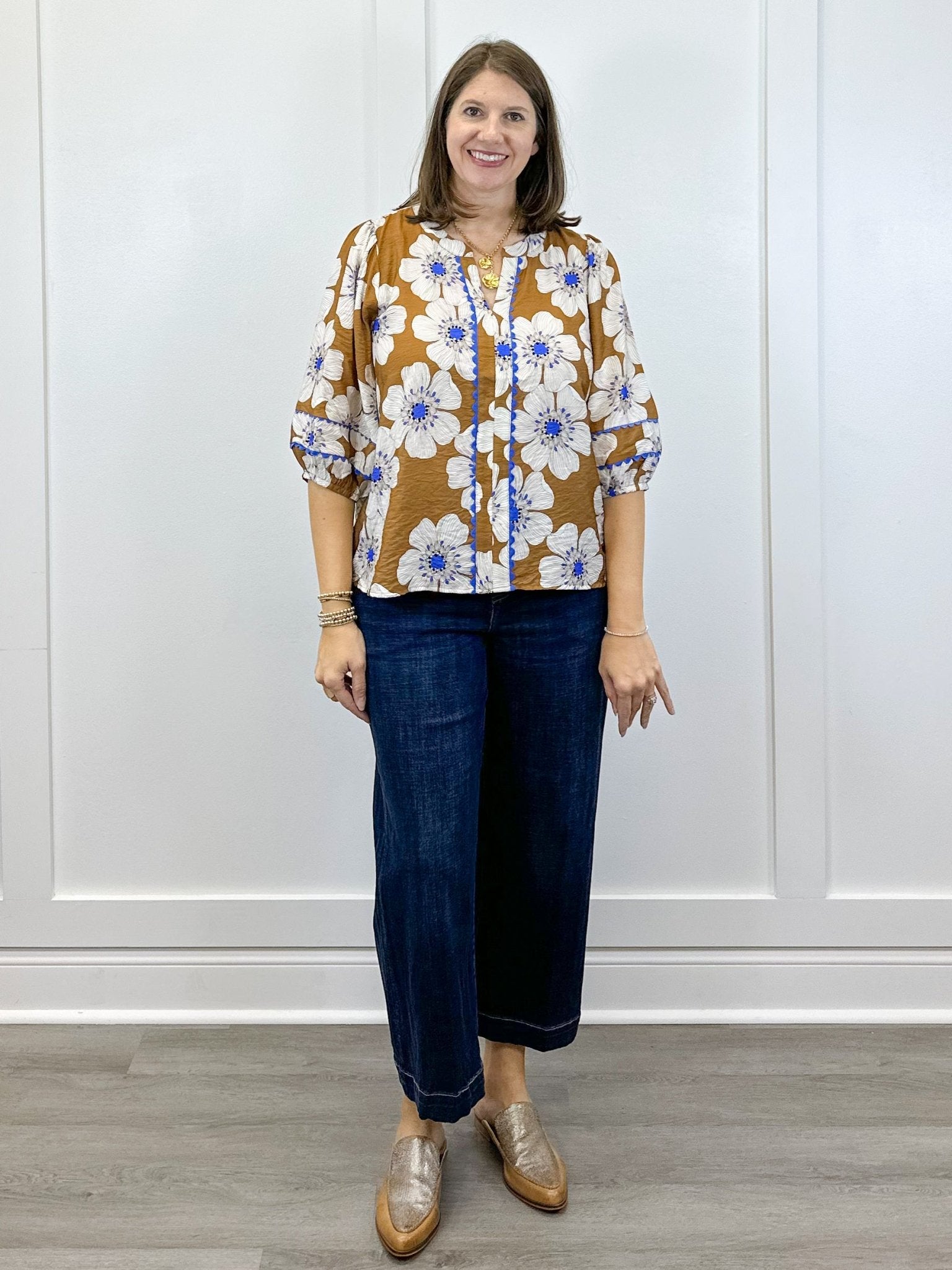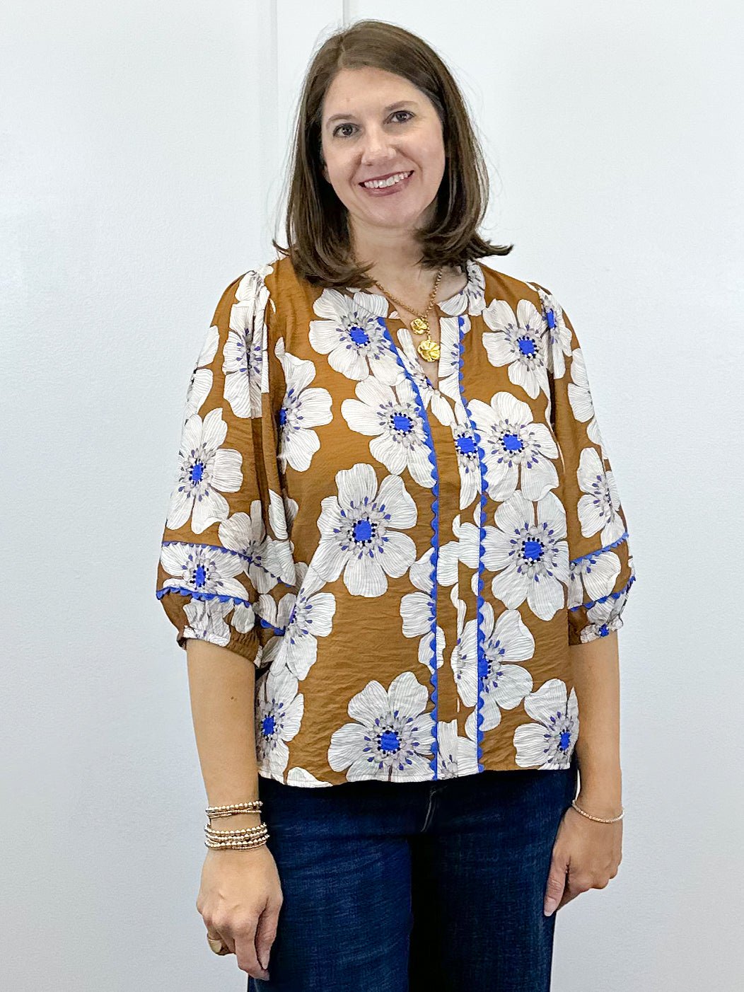 Meadow Bloom Split Neck Blouse - Chestnut Floral