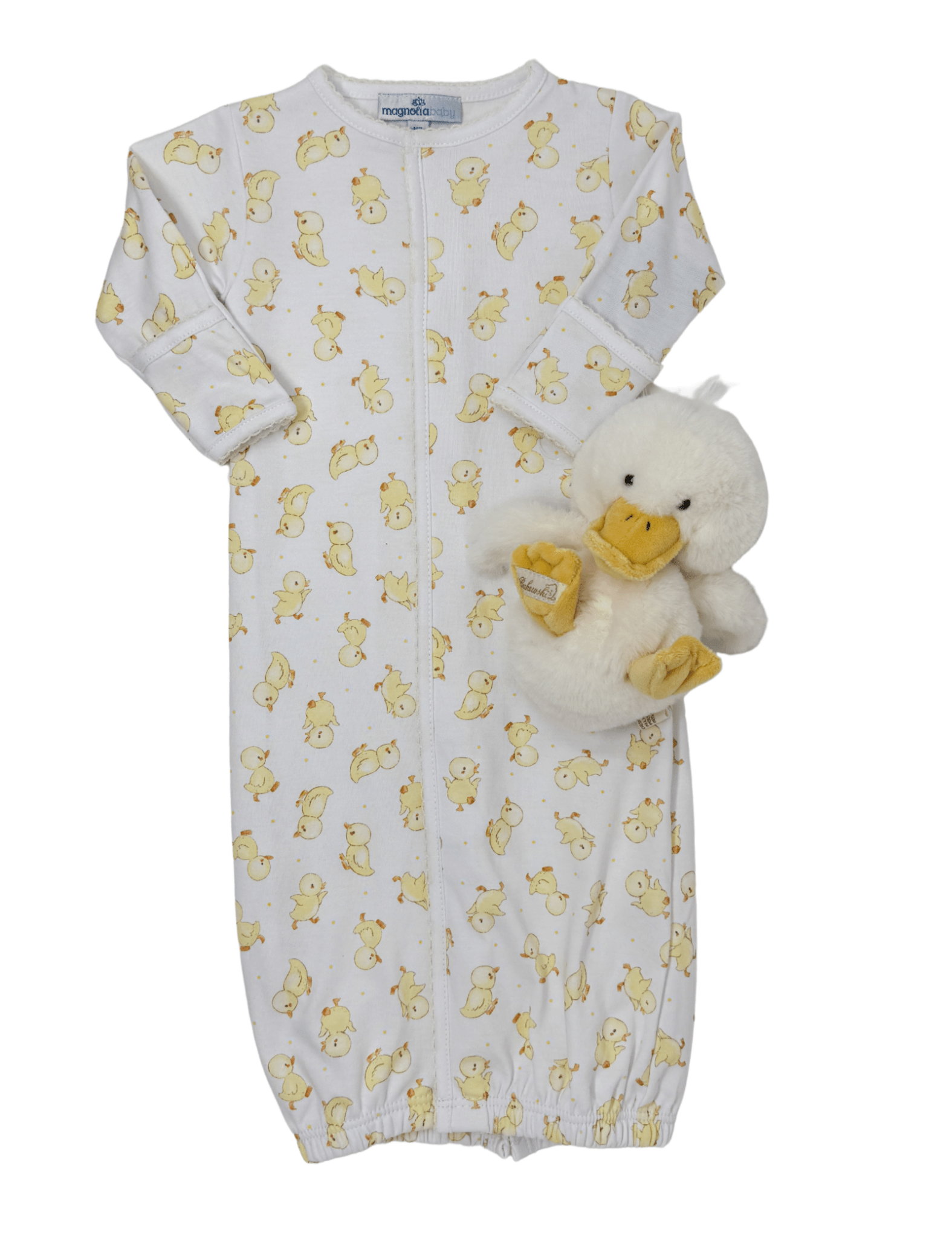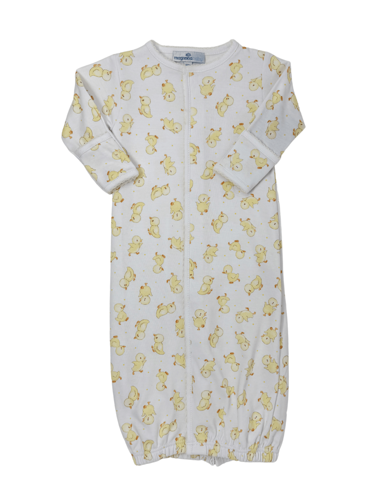 A timeless essential for a baby's wardrobe, the Downy Ducklings Print Converter is as sweet as they are comfortable. The soft 100% Pima cotton provides unmatched comfort for delicate skin. Keep the snaps straight for a gown, or snap together to convert to a footless playsuit.