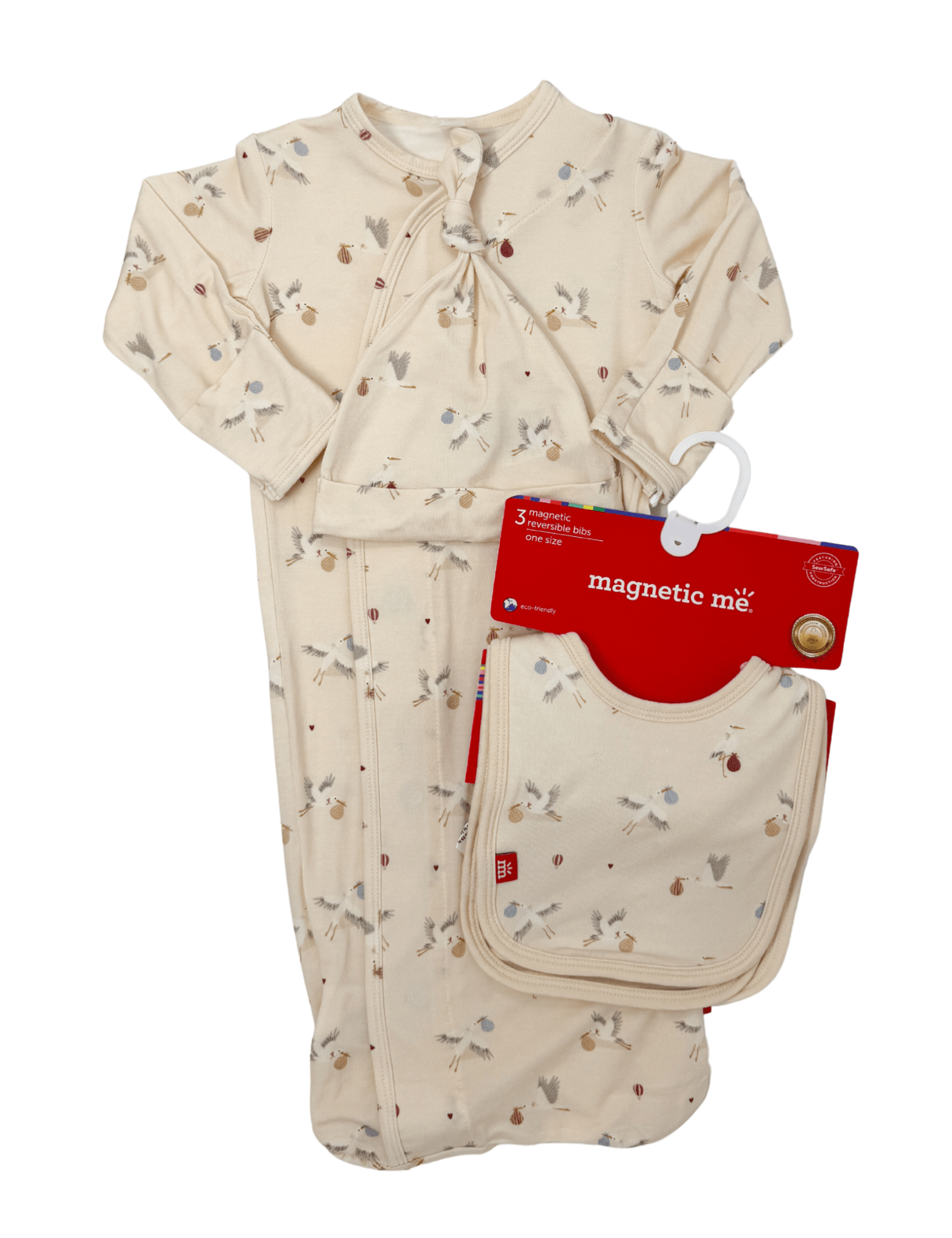 The modal Open Bottom Gown & Hat Set is a newborn, late-night must-have with magnets and an elasticized bottom that take diaper changes to a new level of fuss-free efficiency. It strikes the perfect balance between a swaddle and a sleep sack, making it ideal for car rides as well. Eco-friendly modal is silky soft, stretchy, and breathable for a better night's sleep.