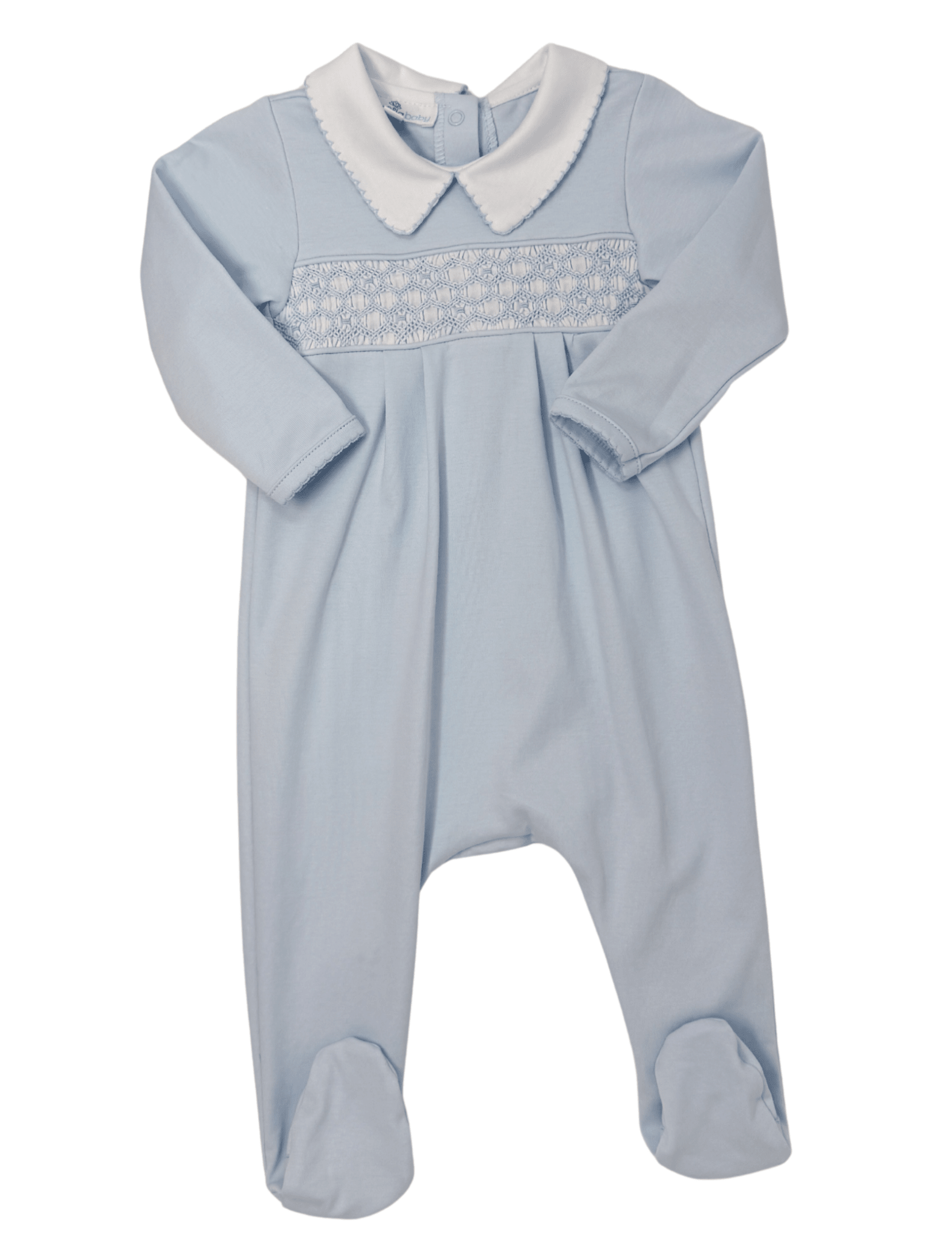 Wrap your little one in timeless charm with the Willow & Walker's Smocked Collared Footie. Crafted from luxuriously soft Peruvian Pima cotton, this heirloom-quality piece features delicate hand-embroidered smocking and a crisp white Peter Pan collar. Designed for both comfort and elegance, it’s the perfect choice for cherished moments and picture-perfect memories.