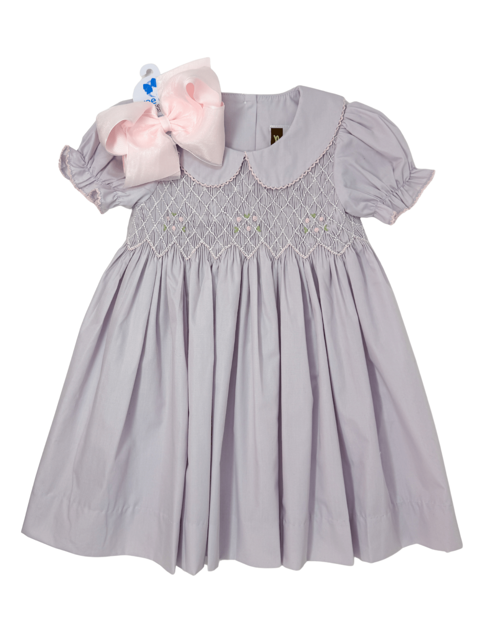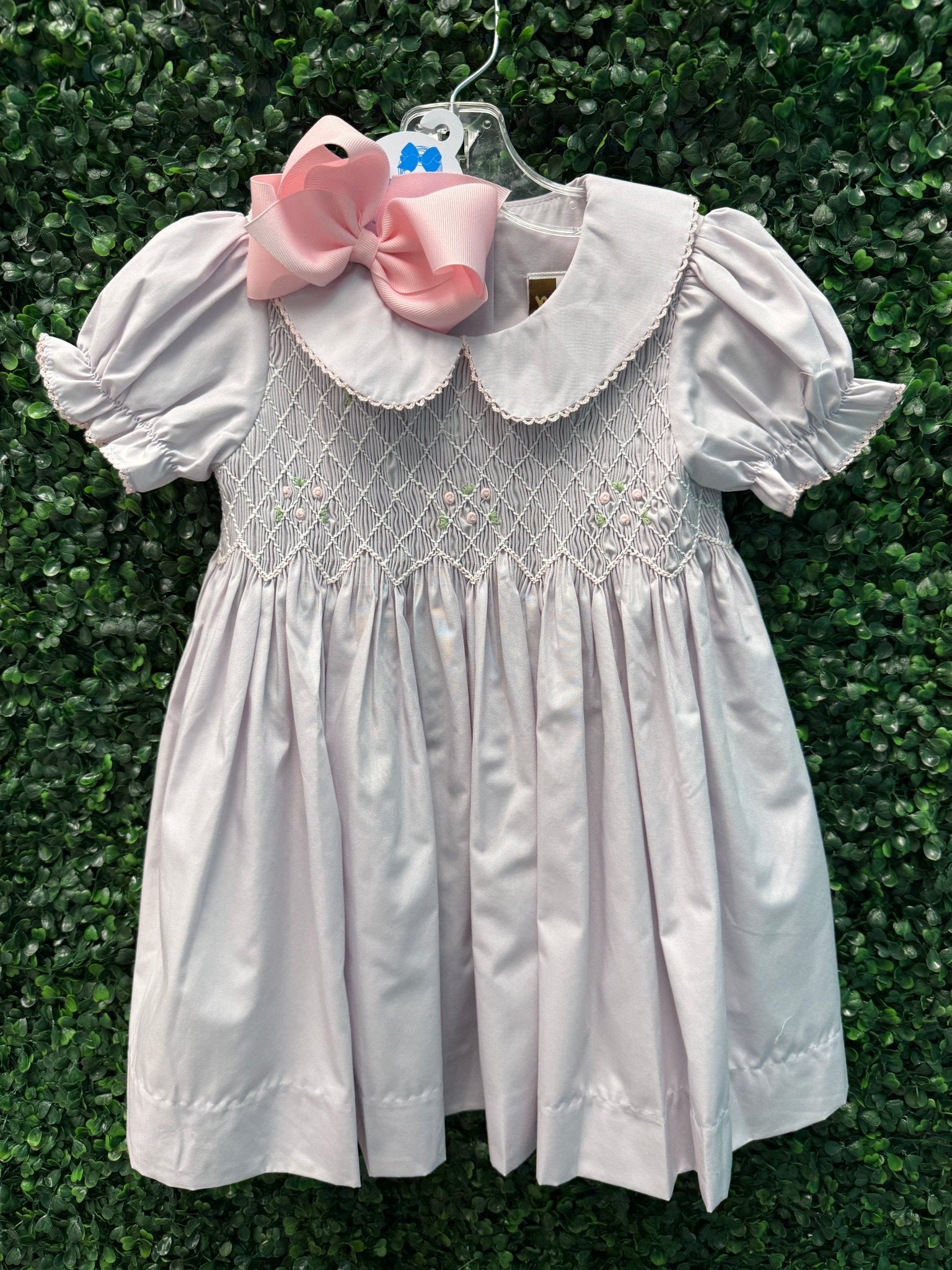 Soft, sweet, and made for the prettiest spring moments, the Lilac Smocked Geo Dress is full of heirloom-inspired charm. This darling dress features a babydoll-style in the softest pale lilac—perfect for portraits, special outings, and picture-perfect days. Beautiful geo smocking with delicate embroidered rosettes graces the chest, while moonstitch details on the collar and sleeves add an extra touch of craftsmanship. It’s a timeless piece you’ll treasure. Pair it with the matching bloomer set for the sweetest sibling or family look.