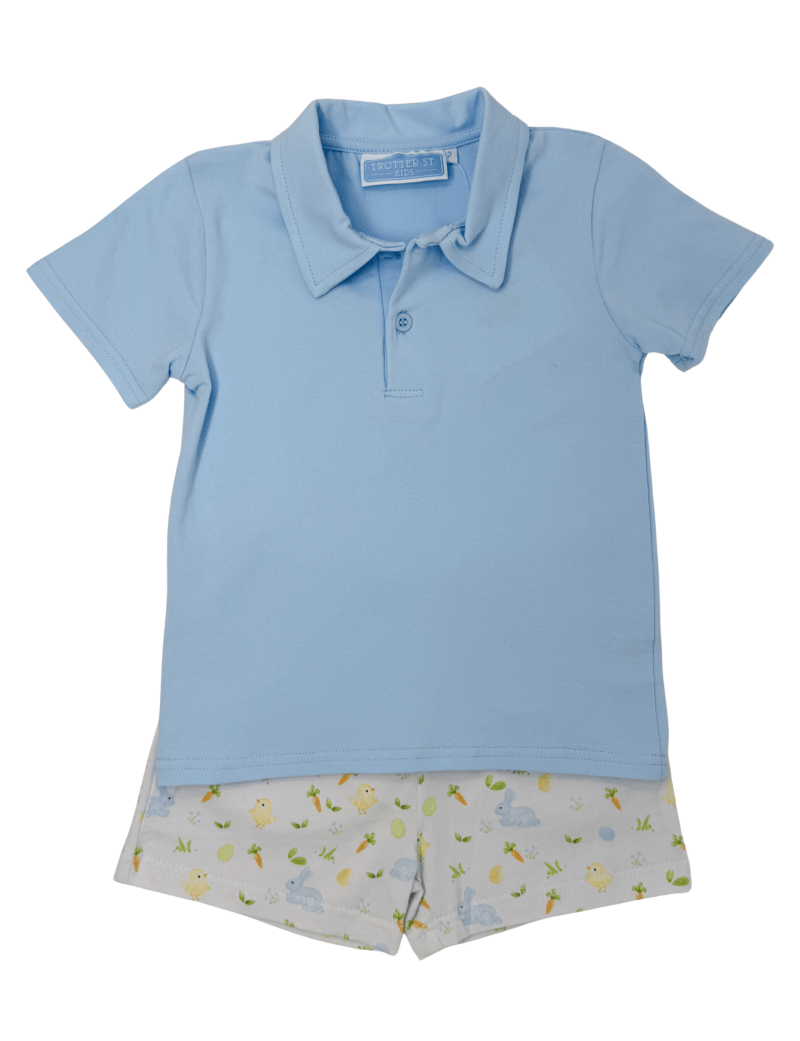 Sweet, classic, and perfect for warm-weather days, the Cottontail Solid Polo Short Set is an effortlessly polished look for little ones on the move. The soft solid polo top brings timeless charm, while the coordinating bunny-print shorts add a playful touch that feels just right for spring outings, Easter celebrations, and everyday adventures.