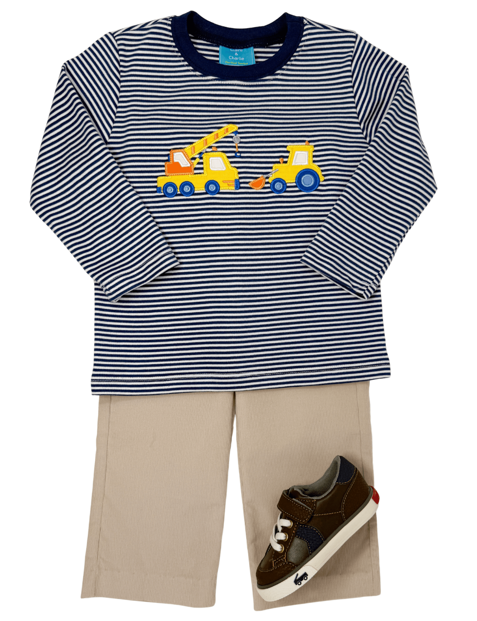 Boys Crane Knit Shirt - Navy Blue Stripe
