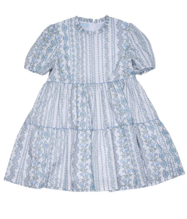 Zoe Mom Dress - Blue & Green Trellis Floral