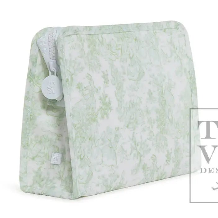 Roadie Medium - Bunny Toile Green Zip Pouch