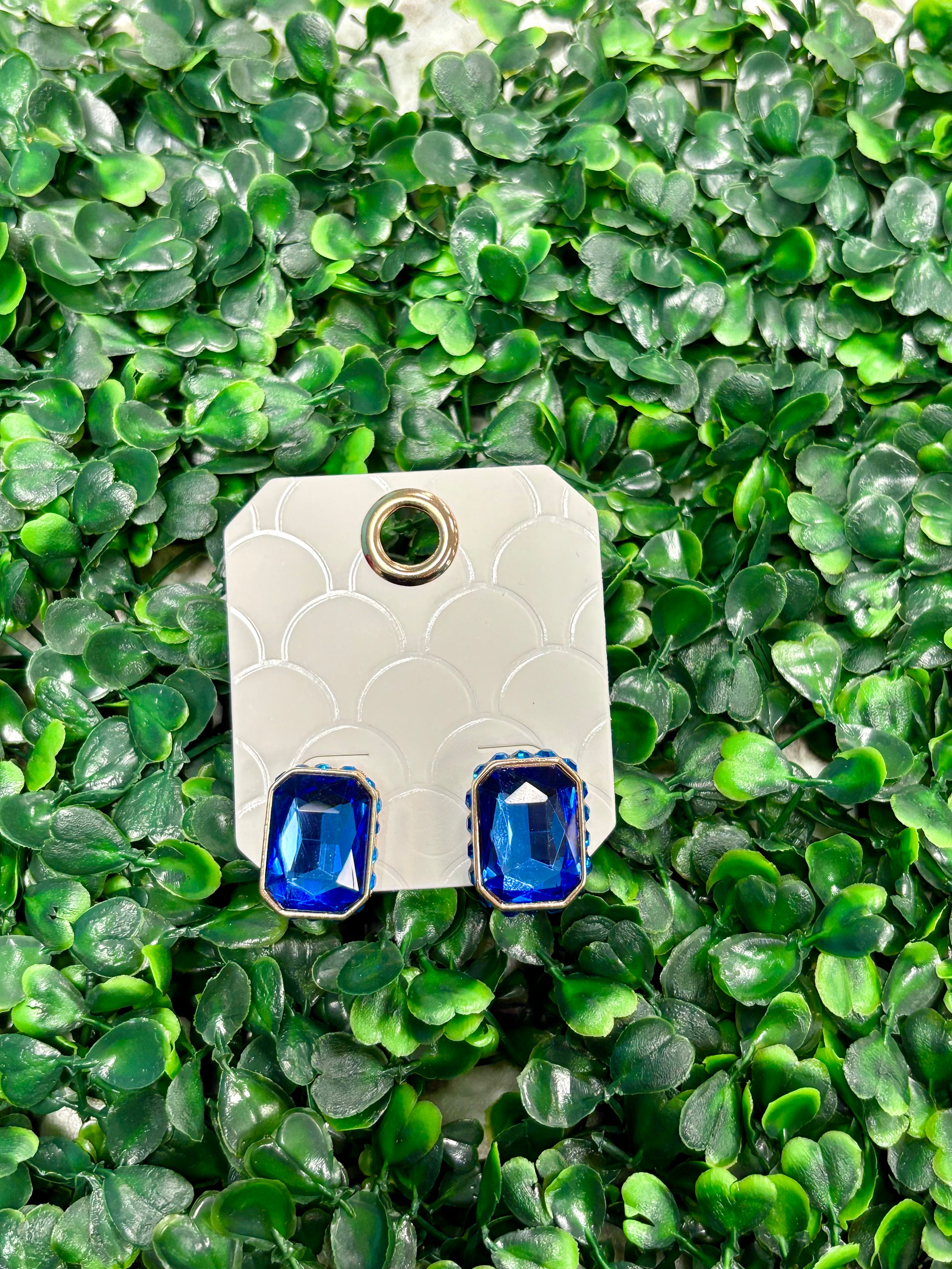 Studded Stone Rectangle Earrings - Sapphire