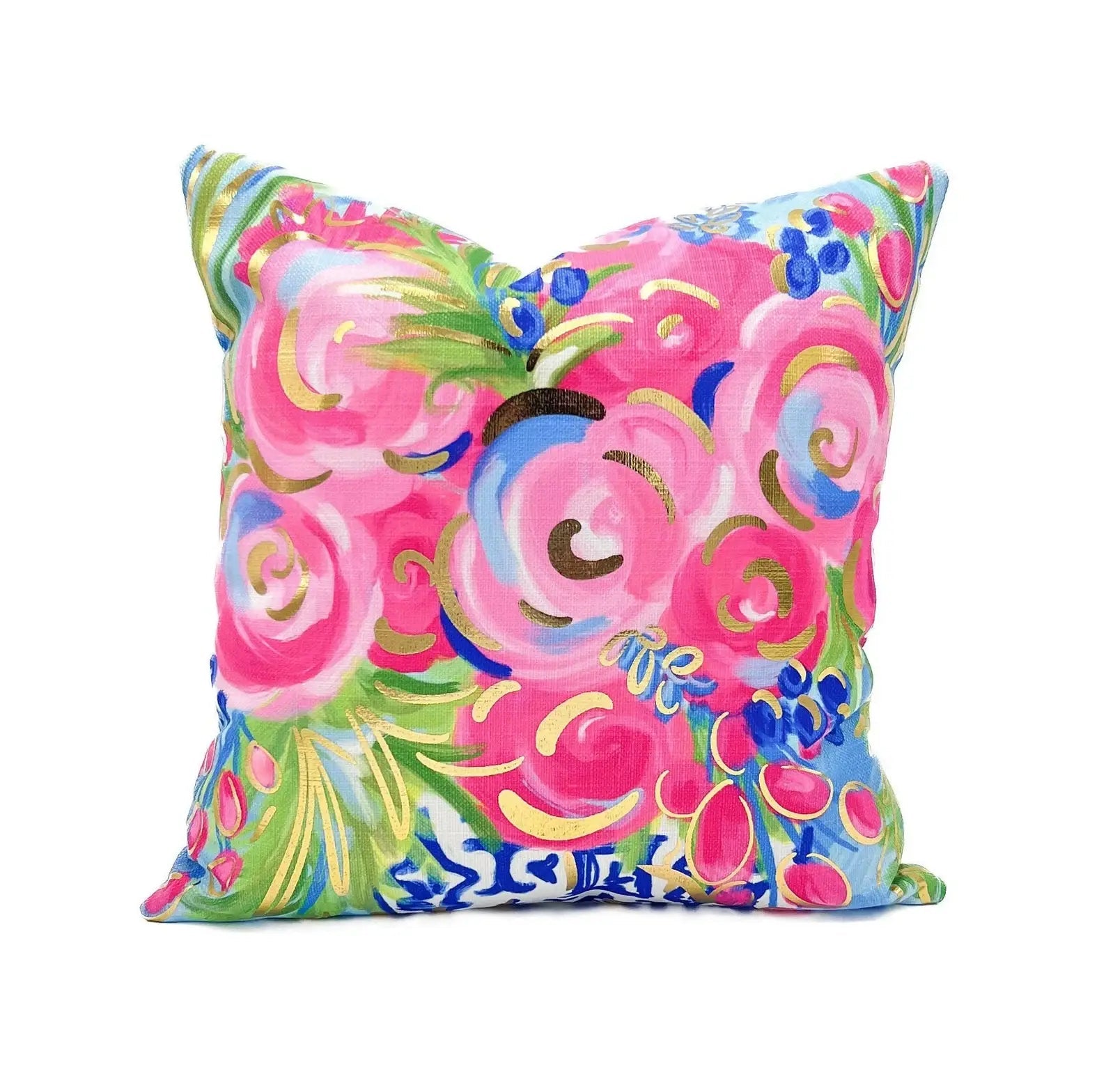 Gold Foil Jewel Chinoiserie Blooms Pillow