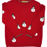 Girls Snowman Sweater - Deep Red