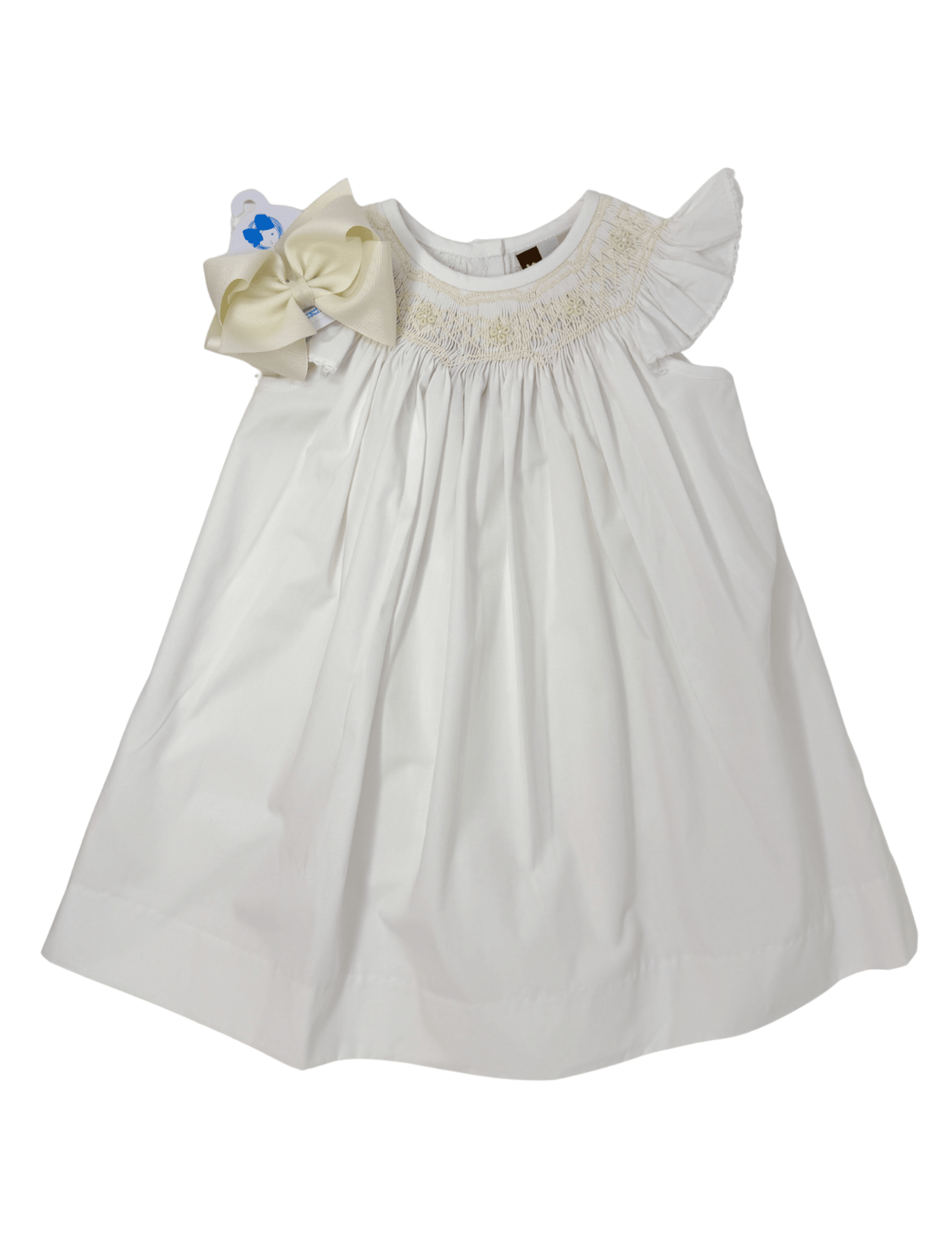 Daygown with Raglan Sleeves and Embroidered Hem - White