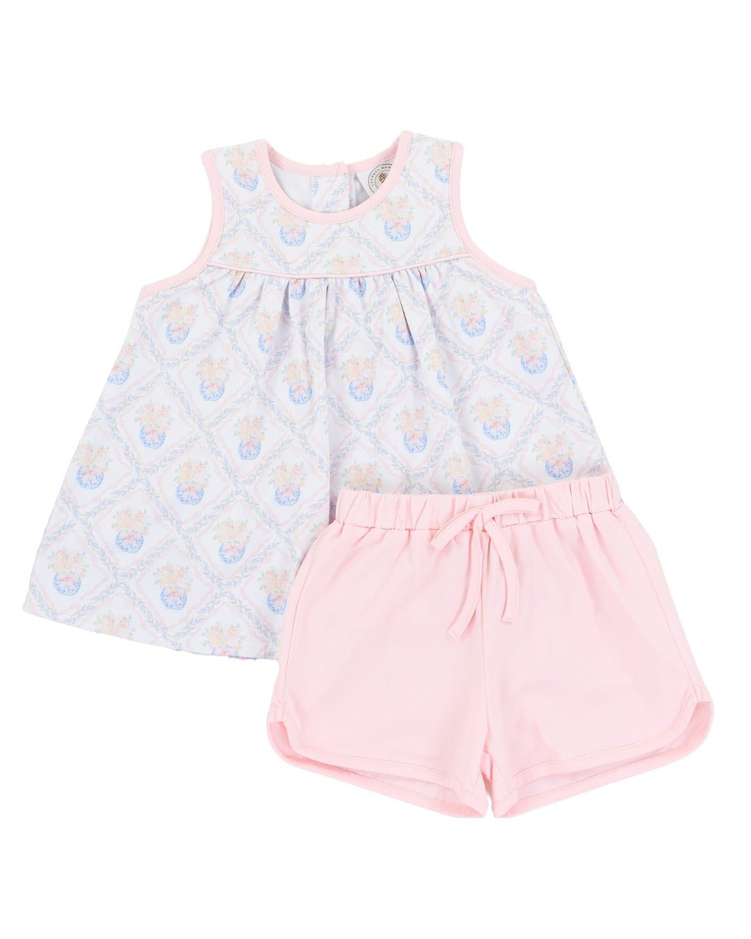 Girls Terry Short Sleeve Top + Short Set - Delicate Daisy Lilac
