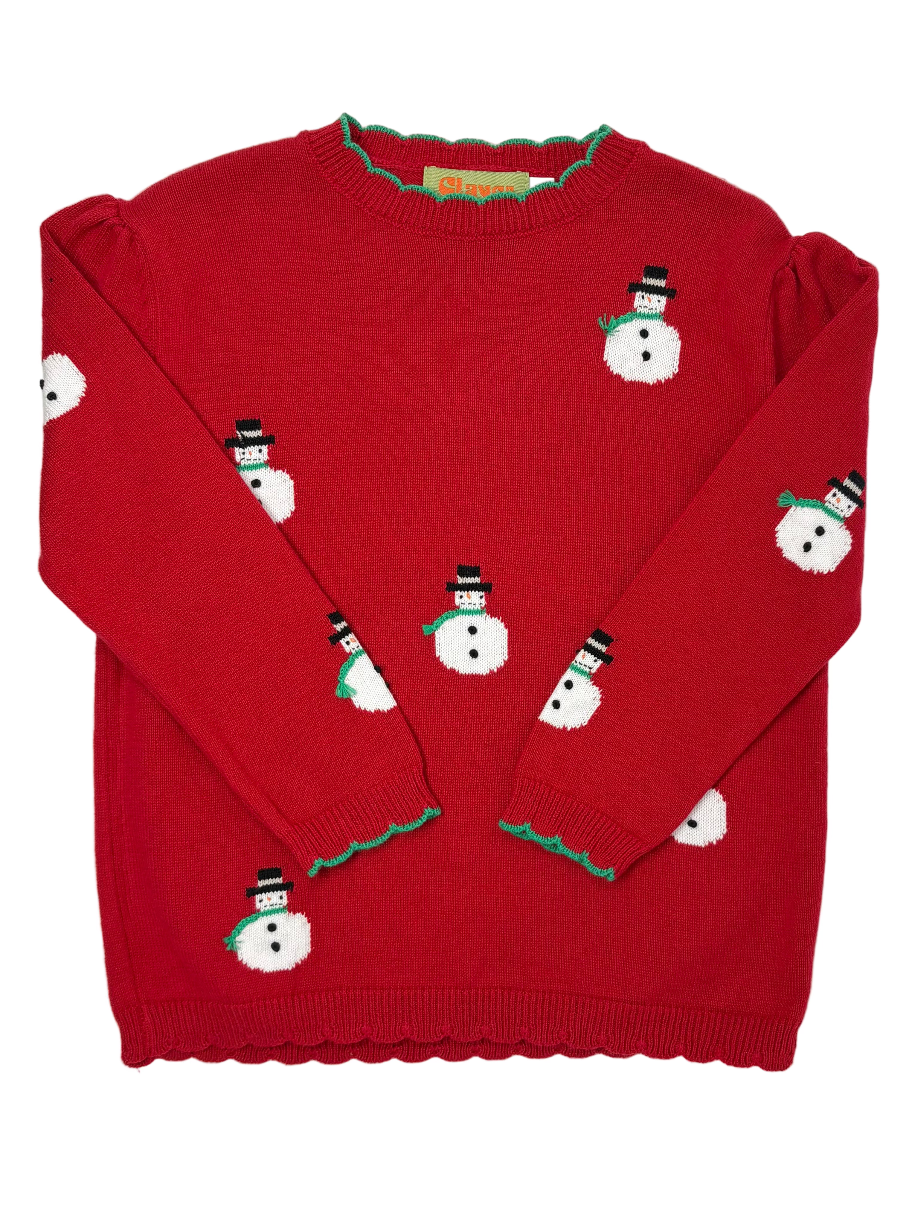 Girls Snowman Sweater - Deep Red