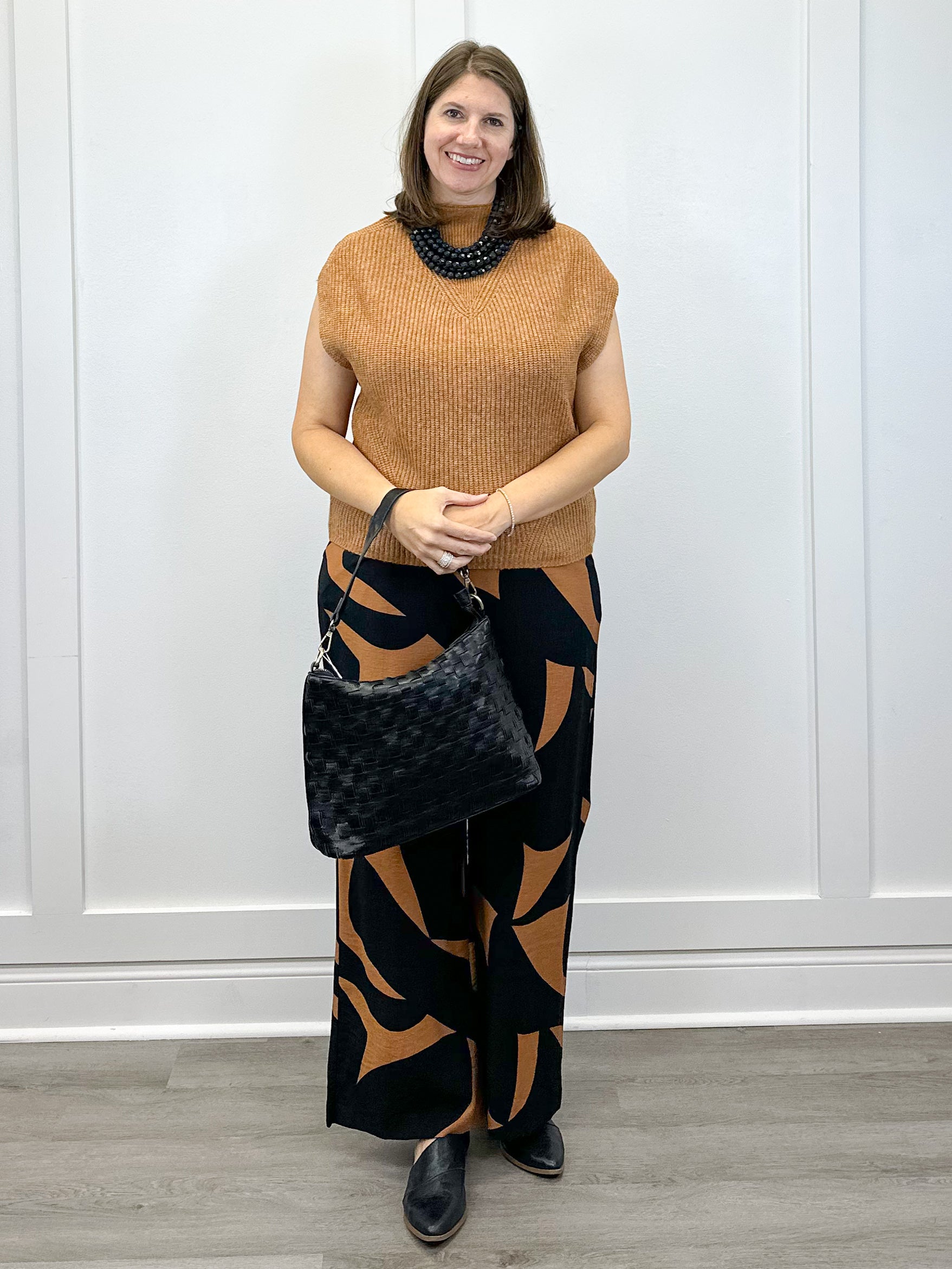 Funnel Neck Elbow Sleeve Knit Top - Black