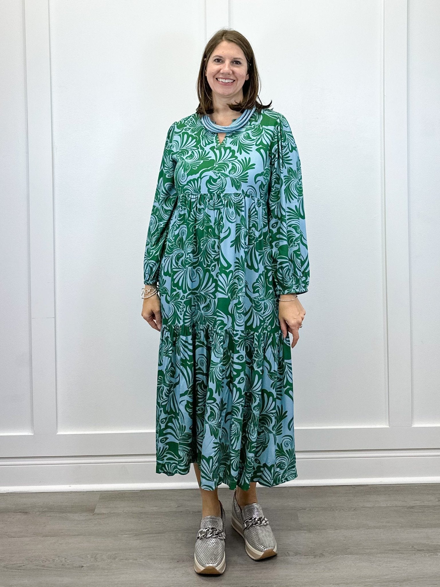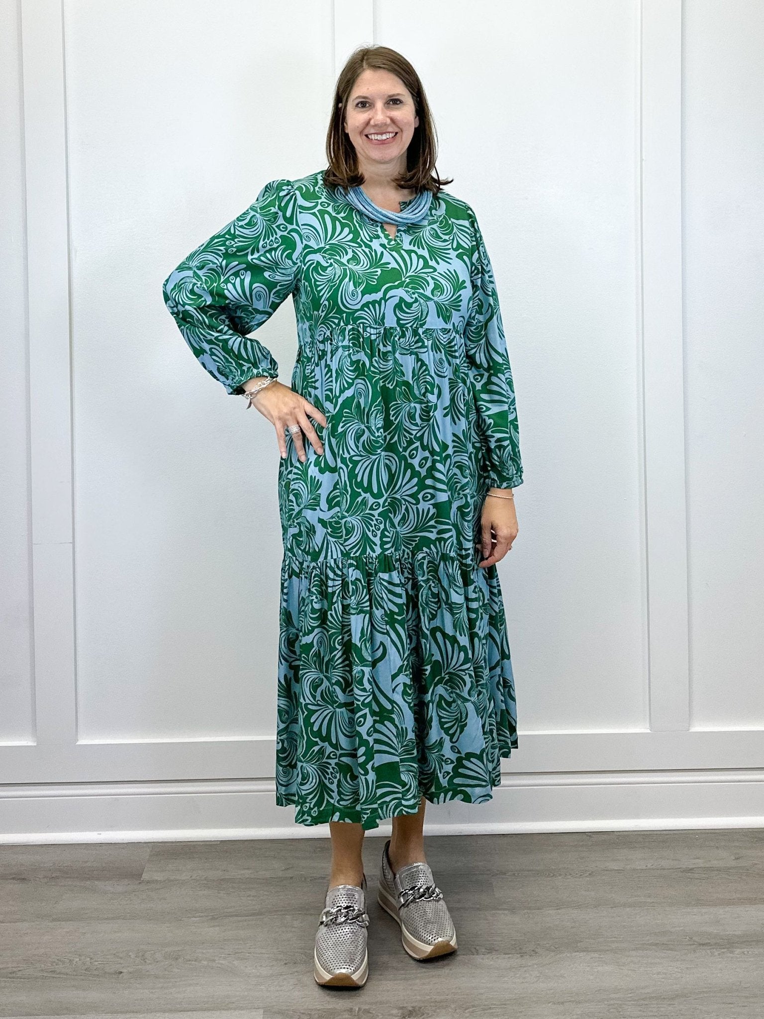 Float through your day with the Jenny Maxi Dress, a whimsical piece that balances elegance and ease. Crafted from 100% rayon twill, this flowing silhouette is designed for comfort and graceful movement. Billowy long sleeves and soft ruffled tiers create a romantic, playful vibe, while its lightweight drape makes it perfect for any occasion—whether you’re dressing it up with heels or keeping it casual with sandals. The Jenny Maxi is your go-to for effortless sophistication.