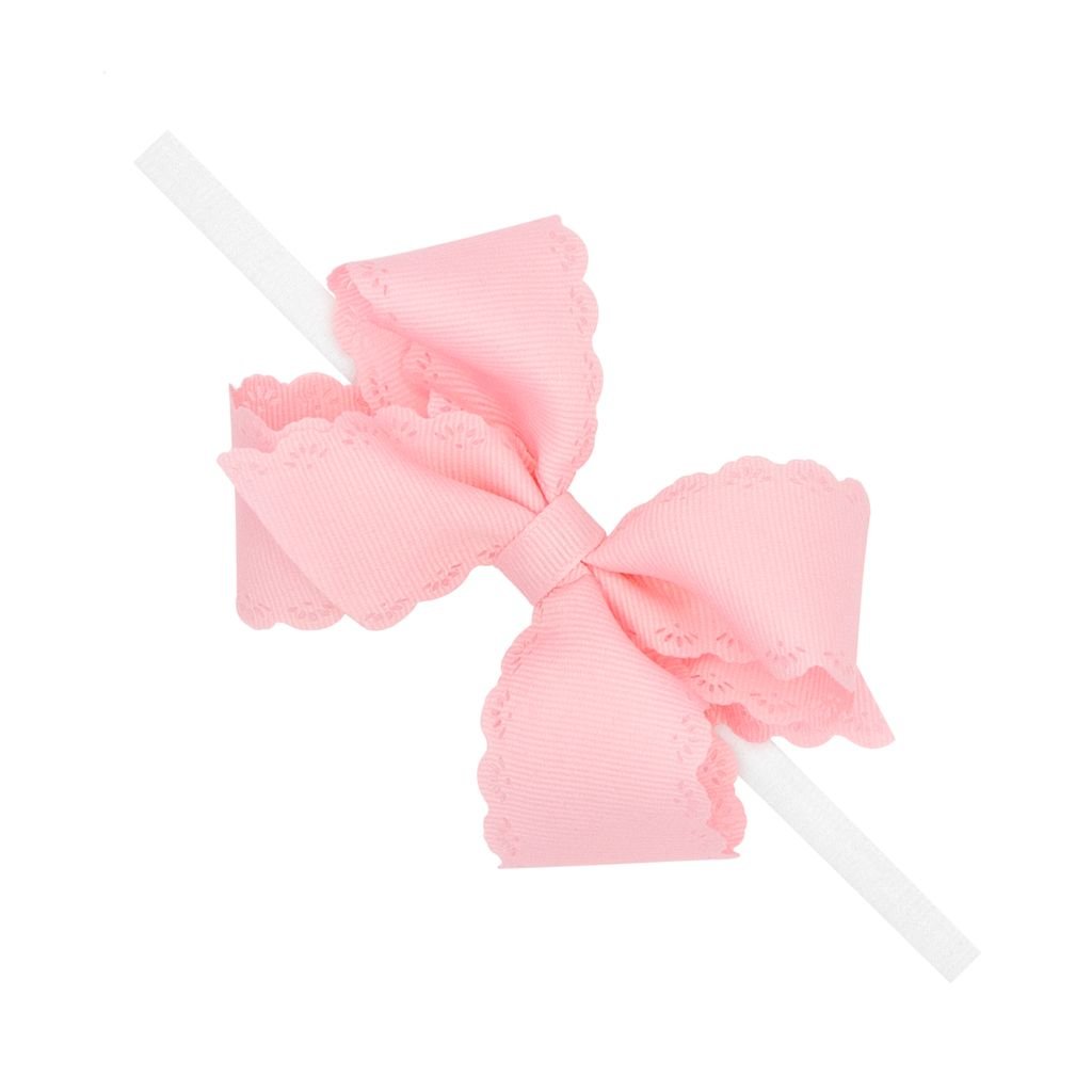 Eyelet Embossed Grosgrain Bow on Band - Lt. Pink