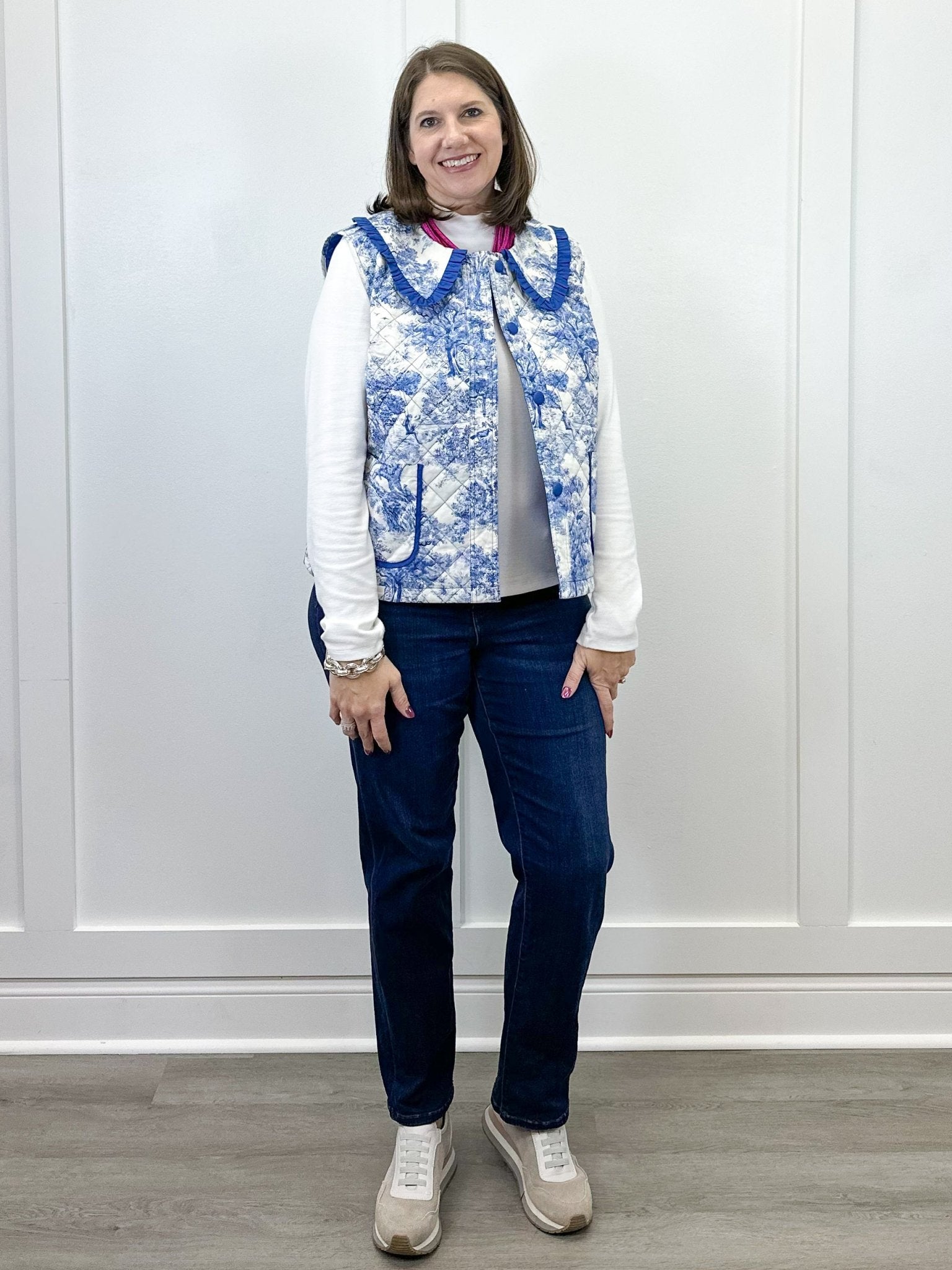Bluebell Toile Quilted Vest - Blue