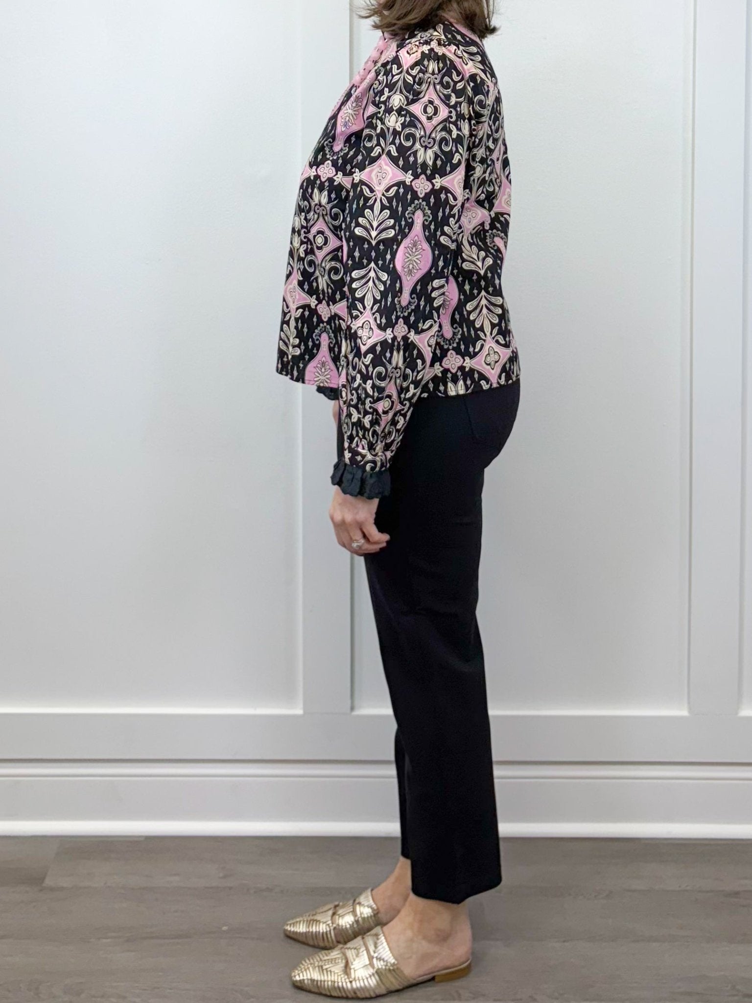 Evelyn Scroll Ruffle Blouse