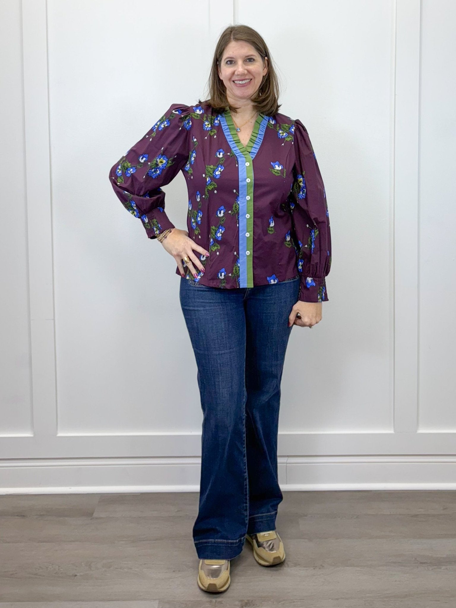 Everly Floral Smock Neck Blouse