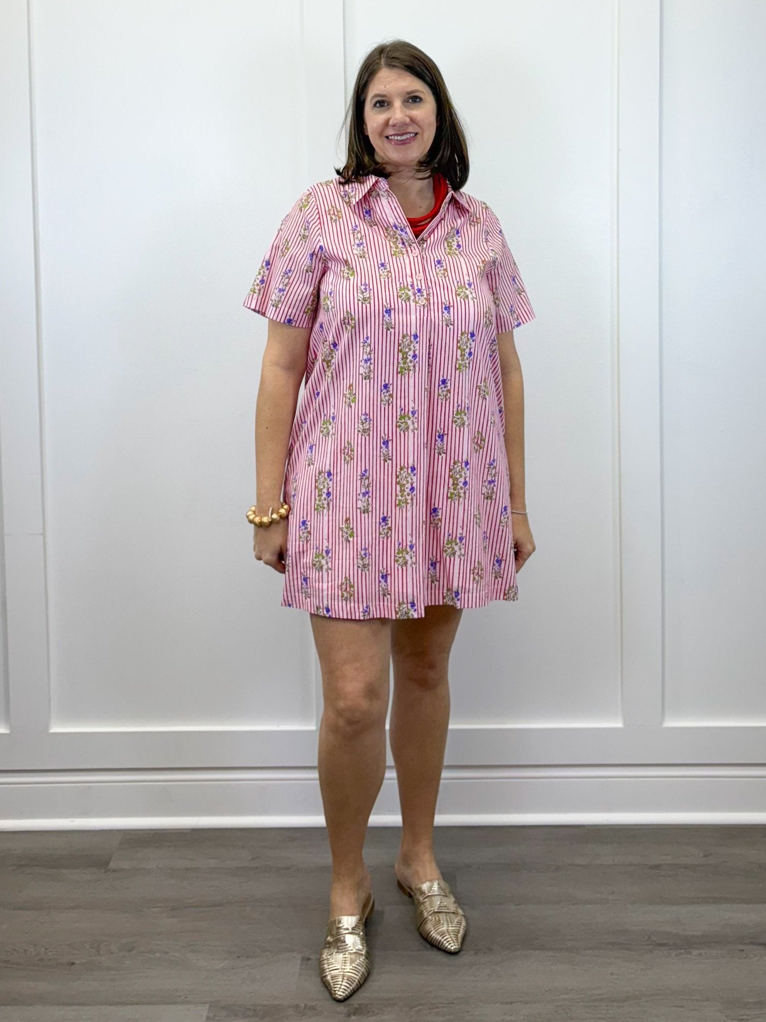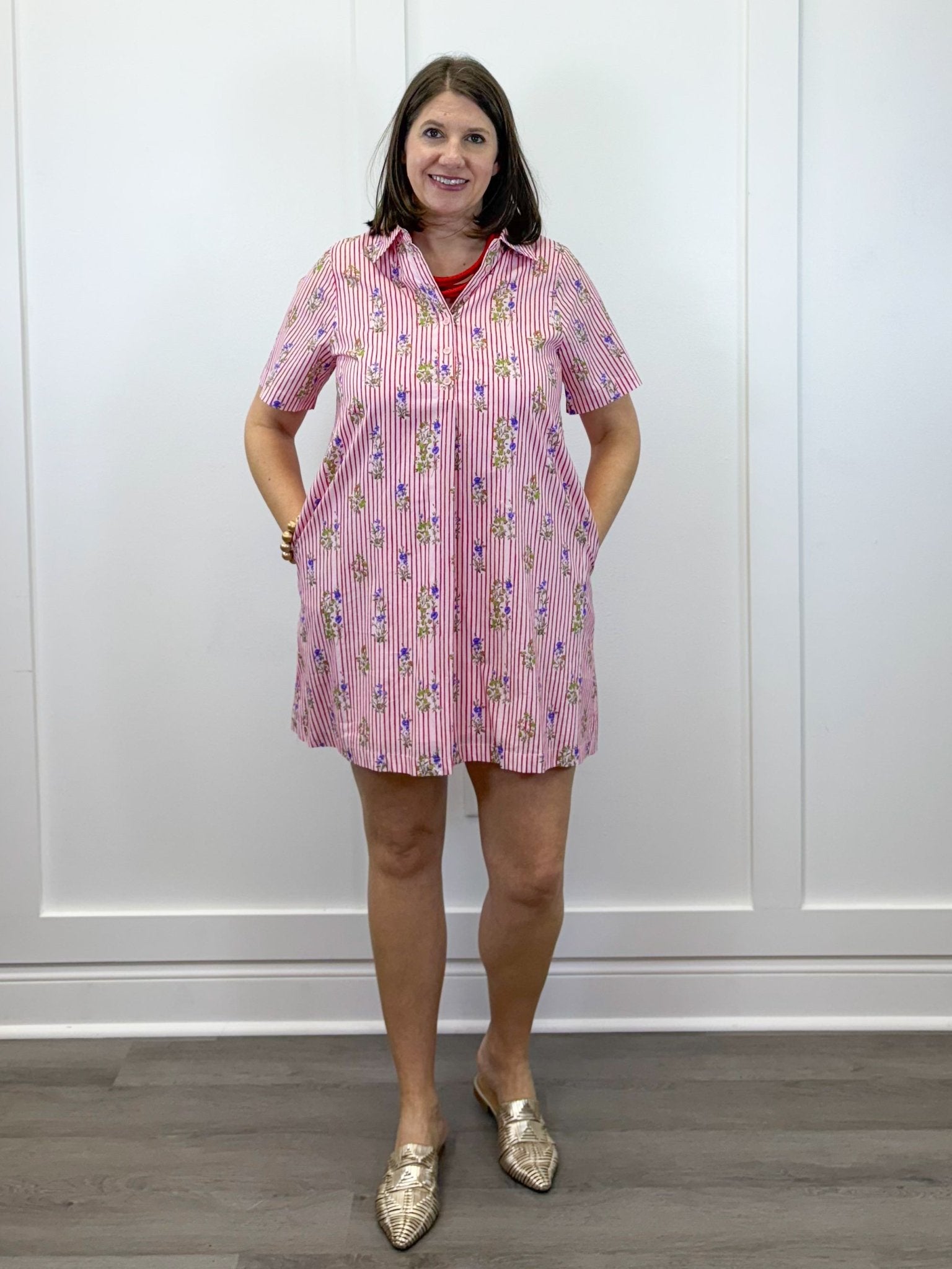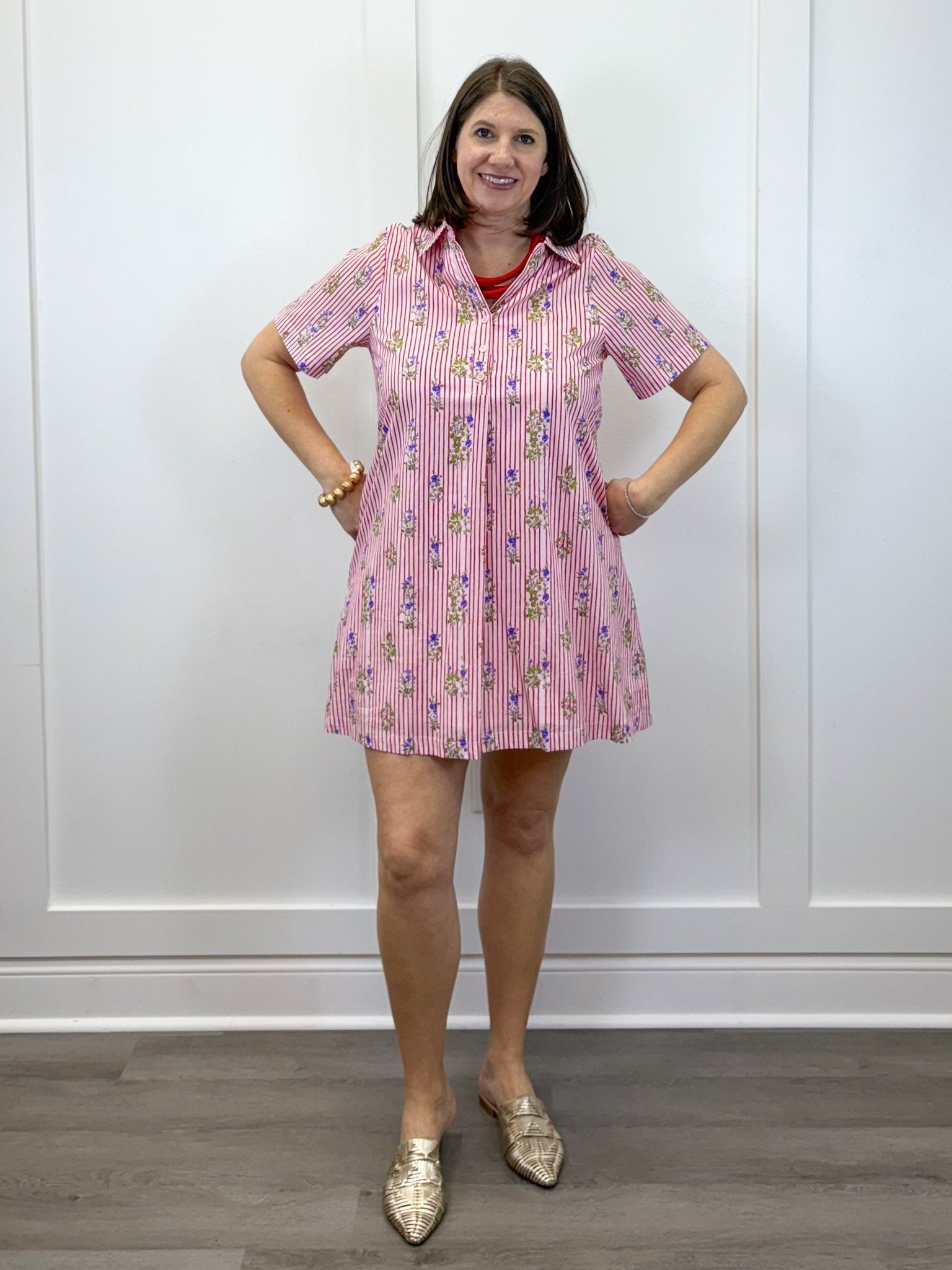 Bright, cheerful, and endlessly charming—the Cloverfield Striped Dress feels like a sunny afternoon wrapped in cotton. The crisp red stripes bring a playful pop of color, while the delicate floral details soften the look with a sweet, nostalgic touch. Easy and unfussy, this is the kind of dress you throw on and instantly feel put together—perfect for farmers markets, lunch dates, or days when you just want to feel effortlessly happy. It’s classic, comfortable, and full of feel-good energy.